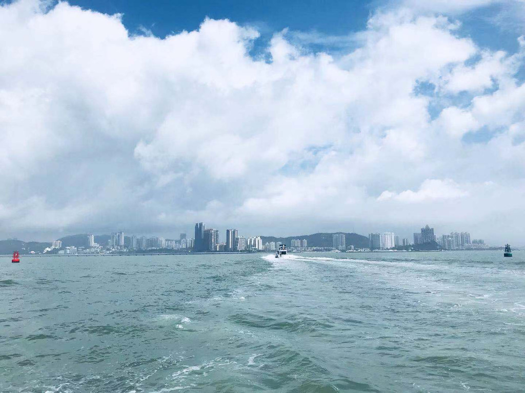 水手跟我说,穿过海上风车,桂山岛就快到了,要是我特想看海豚,可以选择桂山至外伶仃岛这片海域,海豚现身的几率更大,我暗暗记住了,下次有机会一定去!