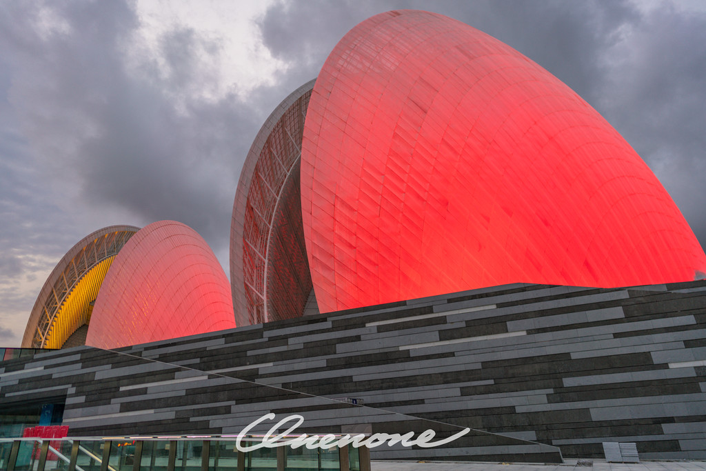 珠海大剧院由一大一小两组“贝壳”组成,设计灵感来自海洋独特物种“日月贝”。珠海大剧院白天呈现半通透效果,一到夜晚则像月光一样晶莹剔透。“珠生于贝,贝生于海”,诠释的是珠海在中国大陆率先拥抱海洋文明,富有历史文化沉淀的城市精神特质。