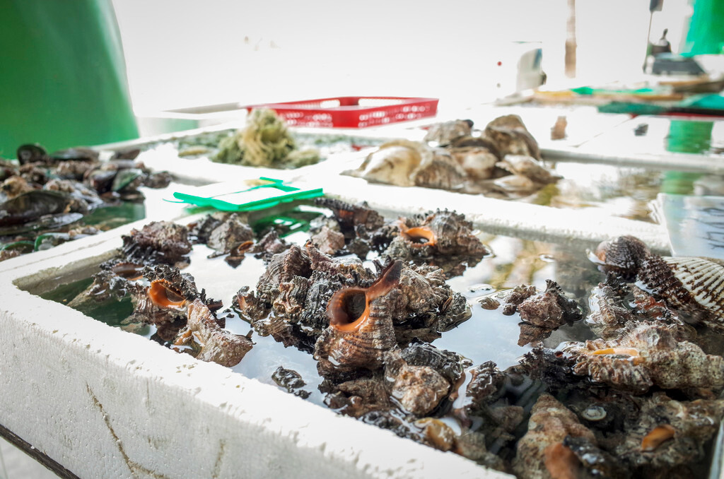 码头左侧,几间海鲜渔档组成了岛上唯一的“海鲜一条街”。东澳岛海产丰富,渔民每天打捞新鲜上岸的海货。你可以从码头档口挑选海鲜,然后拿到餐厅里加工,如果运气好的话,还能碰到东澳三宝:石九公、将军帽、狗爪螺。