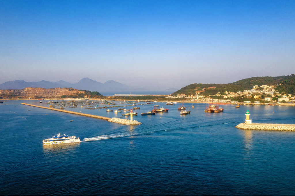 从北山水库下来后,我们便登上观光游船,到达桂山码头再乘船返航,结束这次旅程。沿途可以看到海上风车、海上网箱养殖等景点,一睹桂山岛的迷人风采。