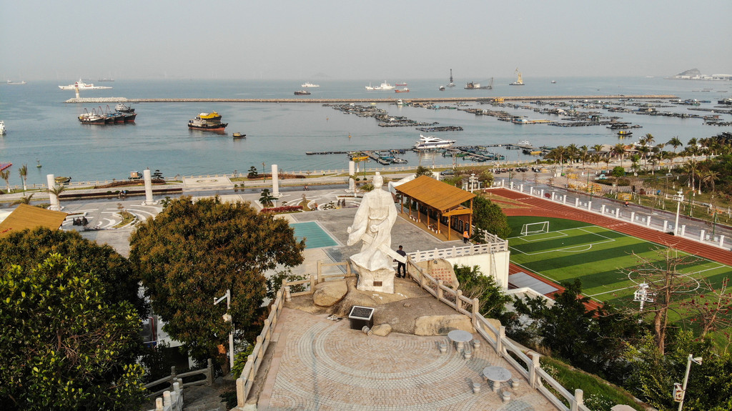 稍作整顿,我们便步行至不远处的文天祥文化广场,此地是了解桂山岛海事历史故事的必去之地。空旷的广场上,5.5米高的文天祥雕像凭海而立,凝神注视着伶仃洋上数百年的变幻风云,雕像周围还有许多刻有桂山岛海事历史故事的石碑。