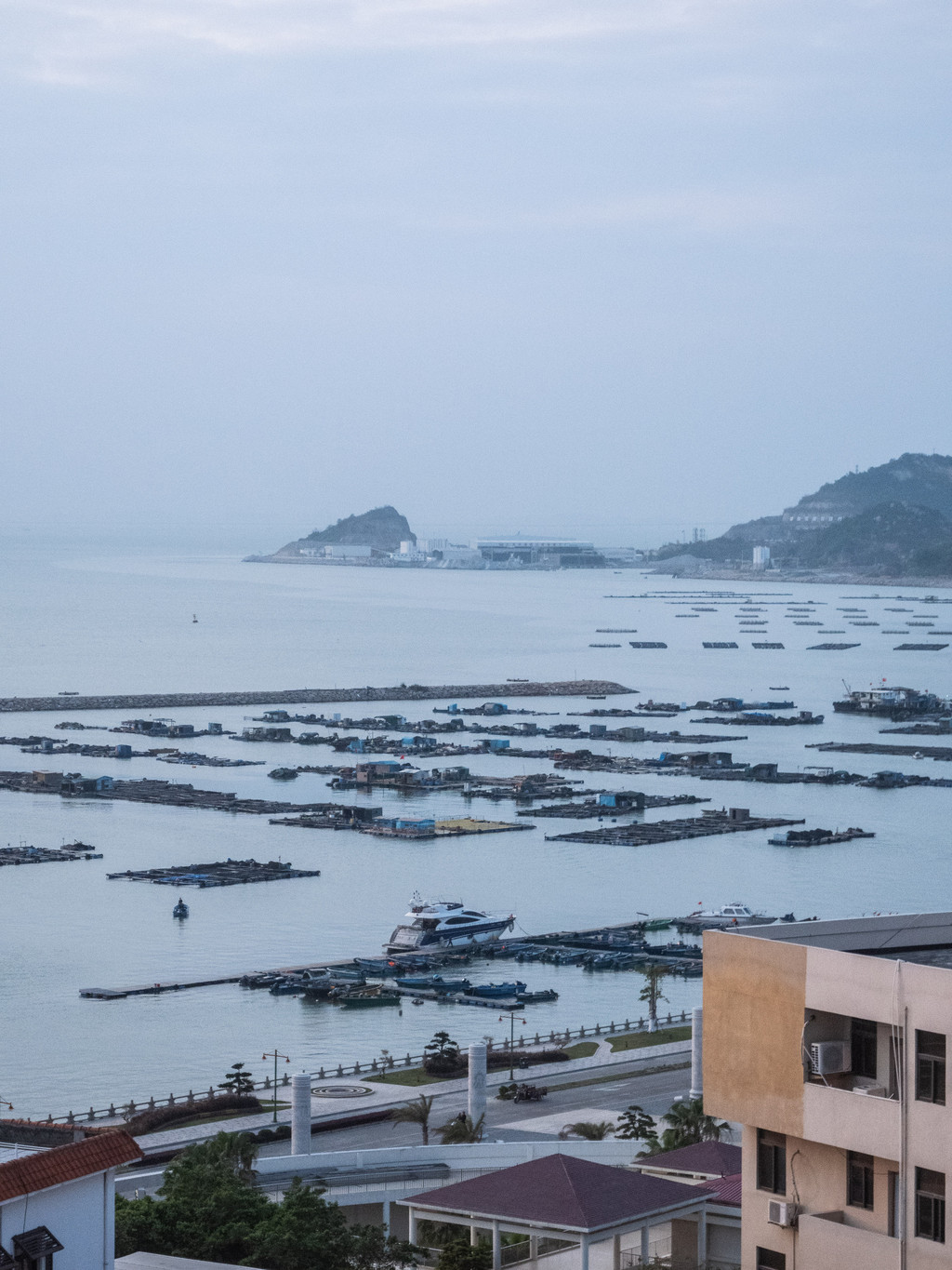 观光游船返回途中,我们看到了一座“海上浮城”,桂山岛得天独厚的地理环境,使这里形成了桂山岛最大的渔排——桂山岛渔排。