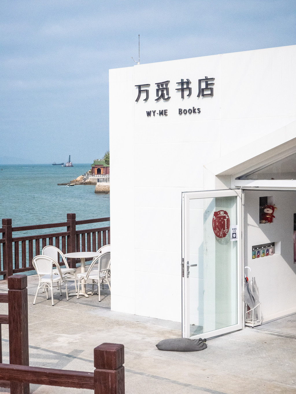 沿着海岸线行至一处纯白的文艺空间——万觅书店。