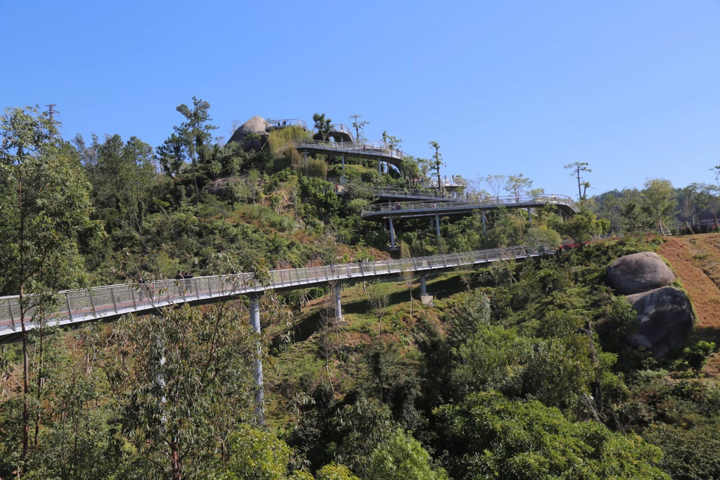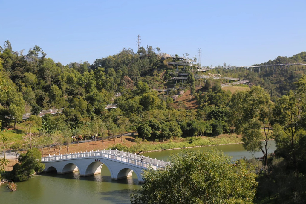 发展路上,浪漫之都正在日新月异。在情侣路享誉世界的同时,珠海人又聚焦凤凰山,通过修筑十几公里的空中栈道,将香山湖公园、香山驿站、石溪公园、大镜山体育公园和海天公园等多个城市景观串联起来,揽湖、观水、阅城、瞰海,形成南北呼应,一条在海边,一条在云端,与情侣路媲美的香山云道。工程还没有全部竣工,香山湖公园甫一开放就游人如织,受到打卡一族的普遍追捧。外地同事莅临珠海,岂有不去之理。