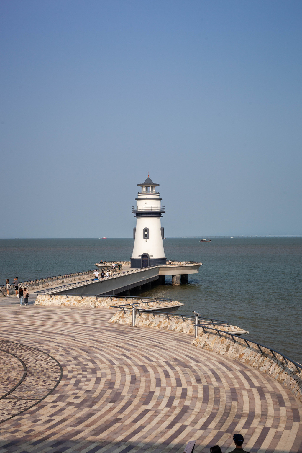 朝一旁望去便是海滨泳场,沙滩占地面积117630平方米,是南中国唯一、国内少有的位于城市中心的沙滩,向北可以远眺珠海渔女,向南能望港珠澳大桥和九洲岛。