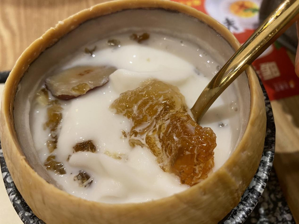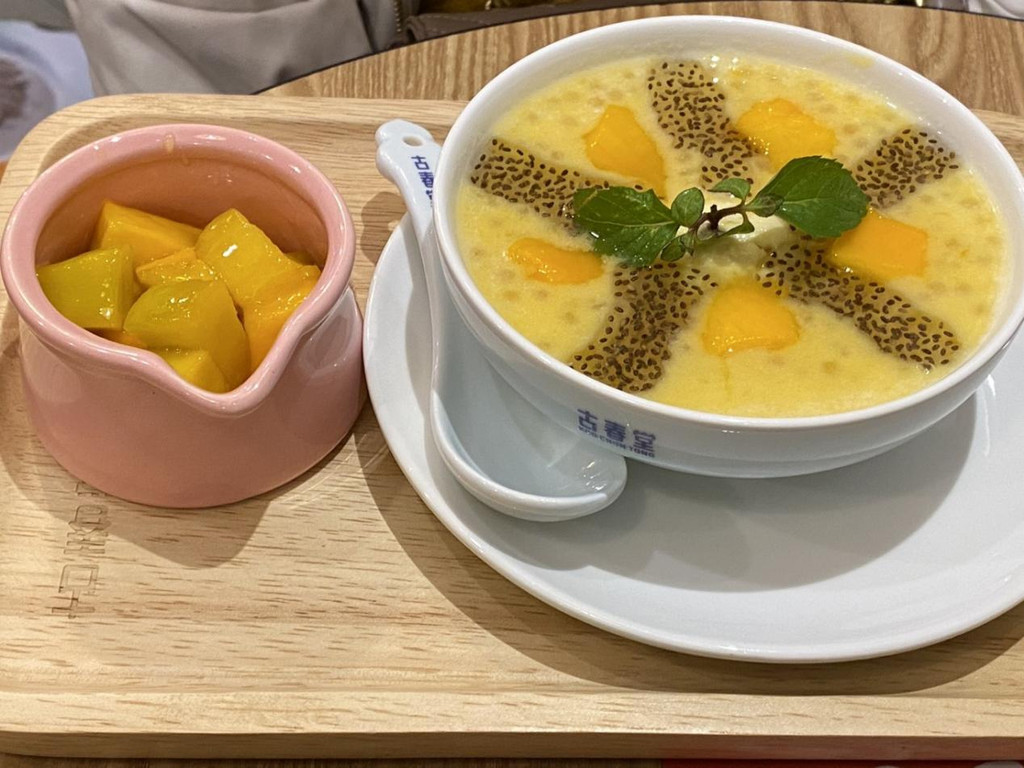 晚餐我们去吃了古春堂早茶,注意,这里的早茶可不是真的喝茶哦。这家店里面有很多甜品,我们吃了椰皇桃胶炖蛋白,听着名字就很高级。