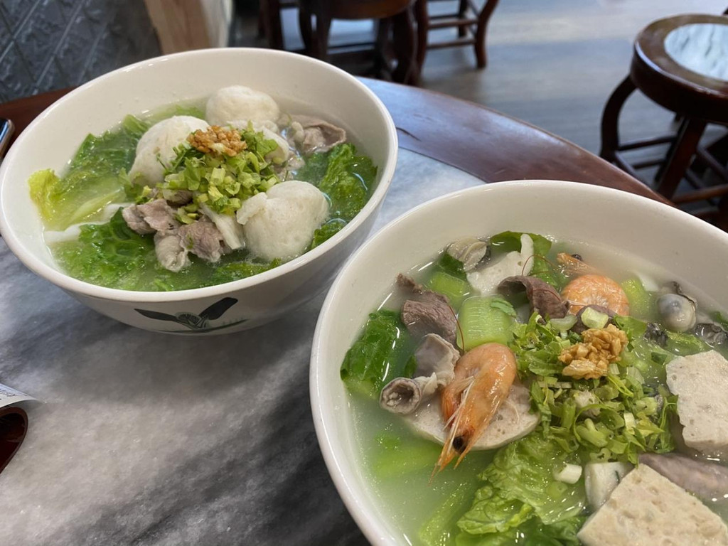 在店里还吃了牛杂和鱼丸的汤,老爸在里面加了鲜虾。不得不说,在广东吃美食,真的很少会踩雷的,这边的任何一道菜品都很好吃。