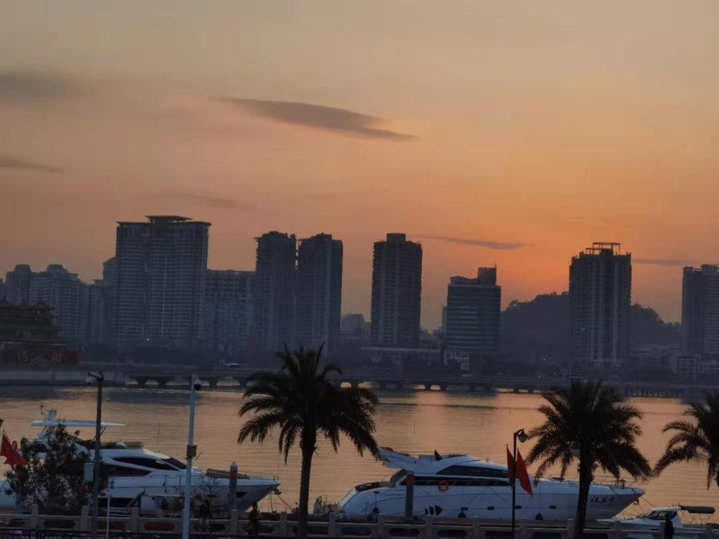 落地珠海,我们真切感受到了这里的美好。还没落地珠海的时候,就看到了这里的朝阳。天空透出绵长的红色来,就好像是将要煮熟的鸡蛋黄一样。就这样,伴随着日出和漂亮的海水,我们来到了珠海。
