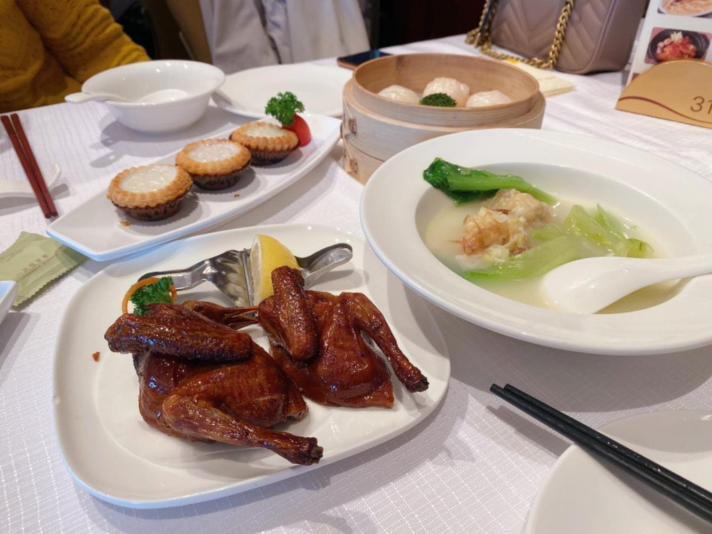 因为第二天要去长隆,我们就只是在长隆附近住的酒店。取完车子之后,我们先去吃了饭。餐厅选的是金悦轩海鲜酒家,这家店里面的菜品很丰富。我们点的都是粤菜,比如烤乳鸽,金腿鲜虾云吞什么的。我最喜欢的就是他们的云吞,里面有很多馅料,云吞也很大。