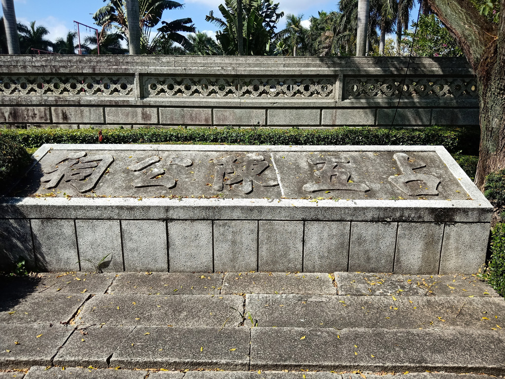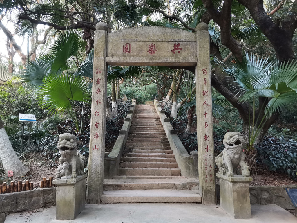 石狮守护的共乐园石牌坊。横匾共乐园为唐绍仪手书。