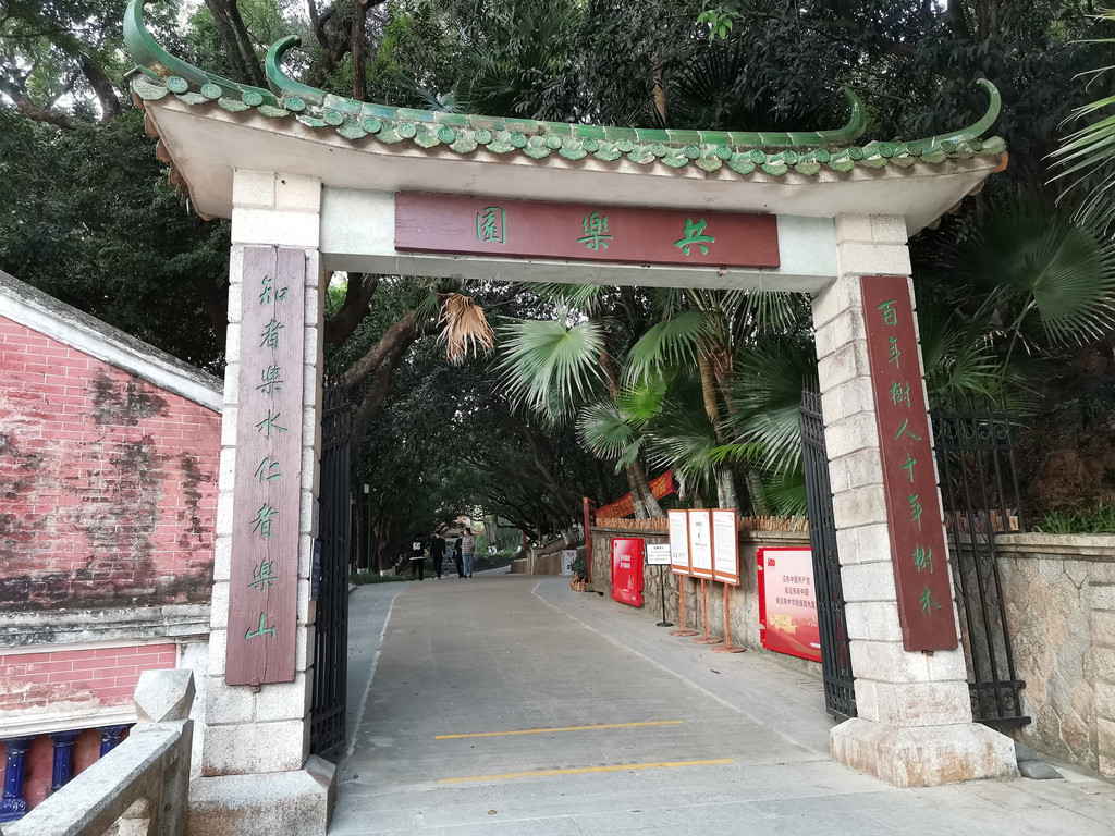 走进共乐园,迎面而来的是憩宾亭。被大树环绕包围的憩宾亭清新耸立,显得端庄、雍容。
