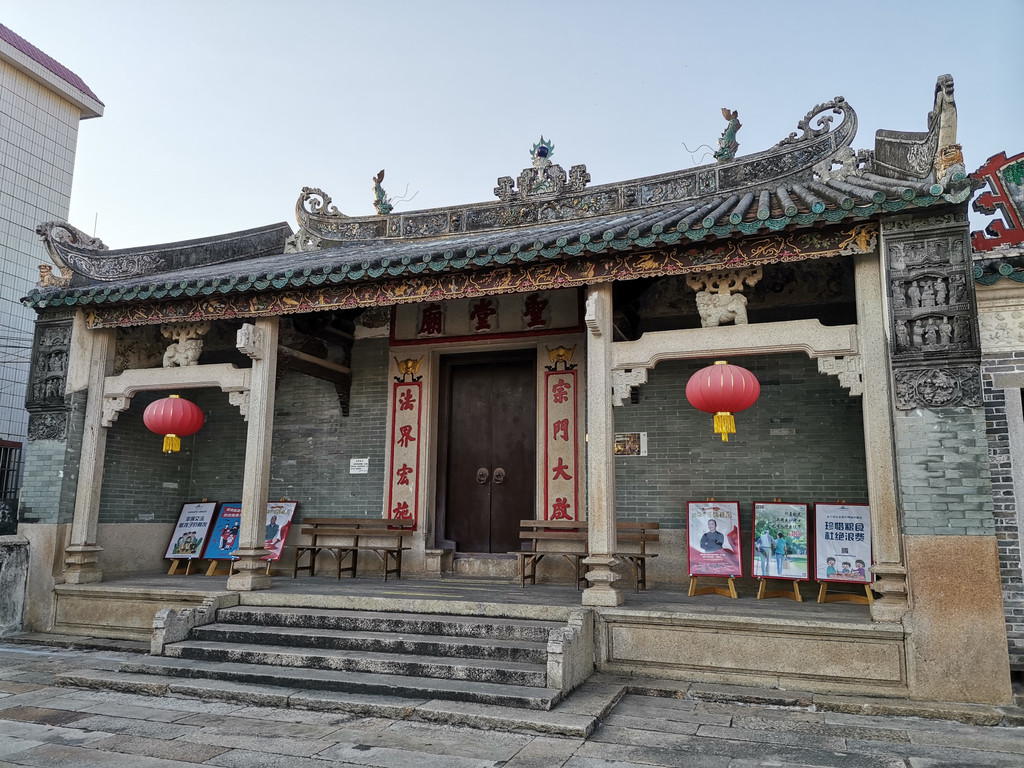 陈氏大宗祠。现在辟为牌匾展览馆。四壁挂满了从祖国各地收集来的各式牌匾,可谓荟萃天下于一堂也。