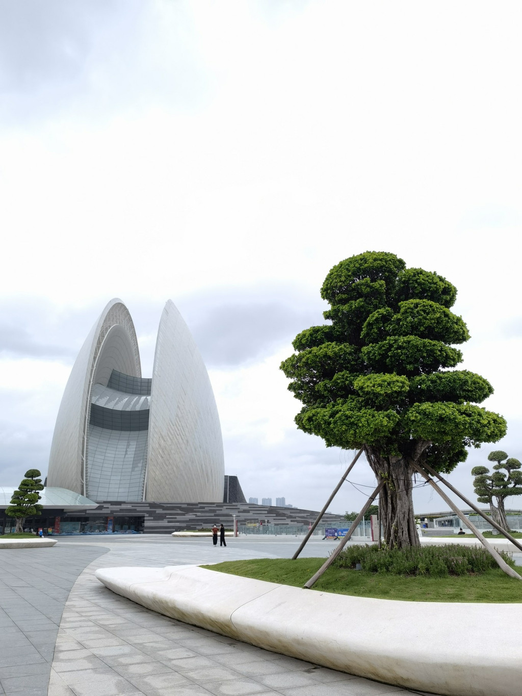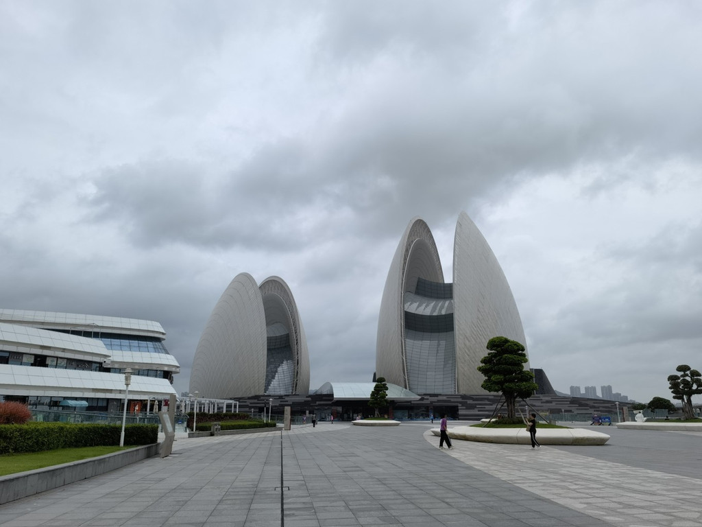 远远看过去,这里就好像是两个大贝壳一样。实际上,日月贝是一个大剧院哦。因为我们来的这天,天空灰蒙蒙的,所以,拍出来的照片也比较模糊。即便如此,我也好喜欢这里的景象。