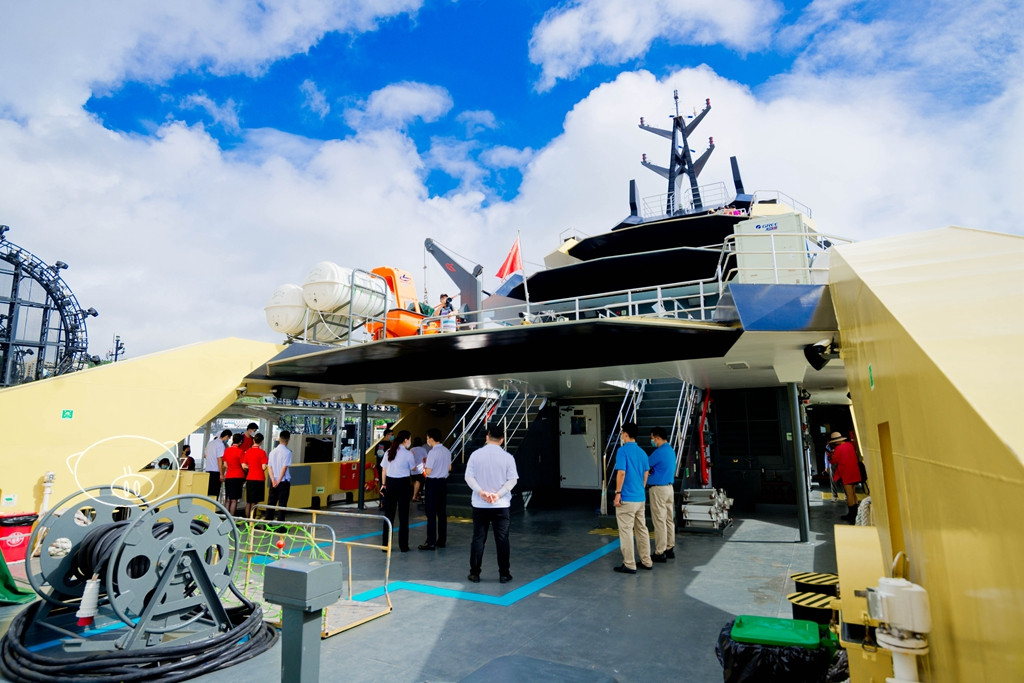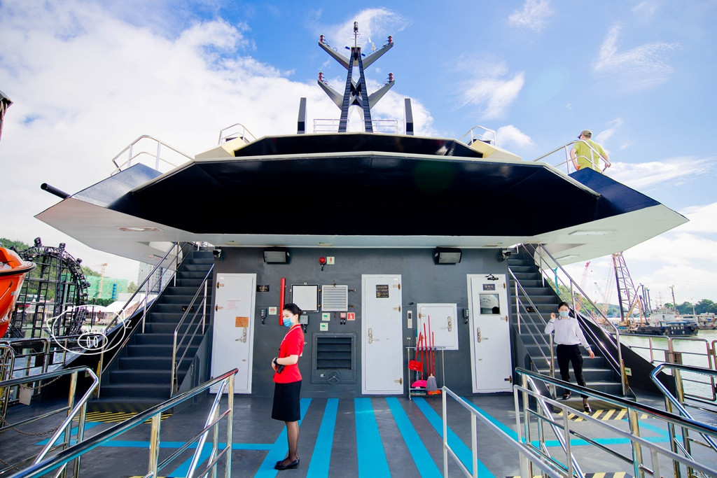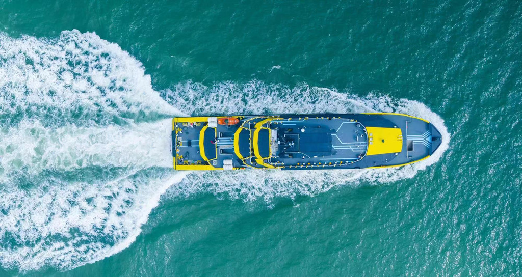 “大黄蜂”号总长62米,型宽12米,配置客位数约350个,航速超过16.5节。从空中看,炫酷的外观、定制的“跑车式”尾灯,更有强烈的视觉冲击力。