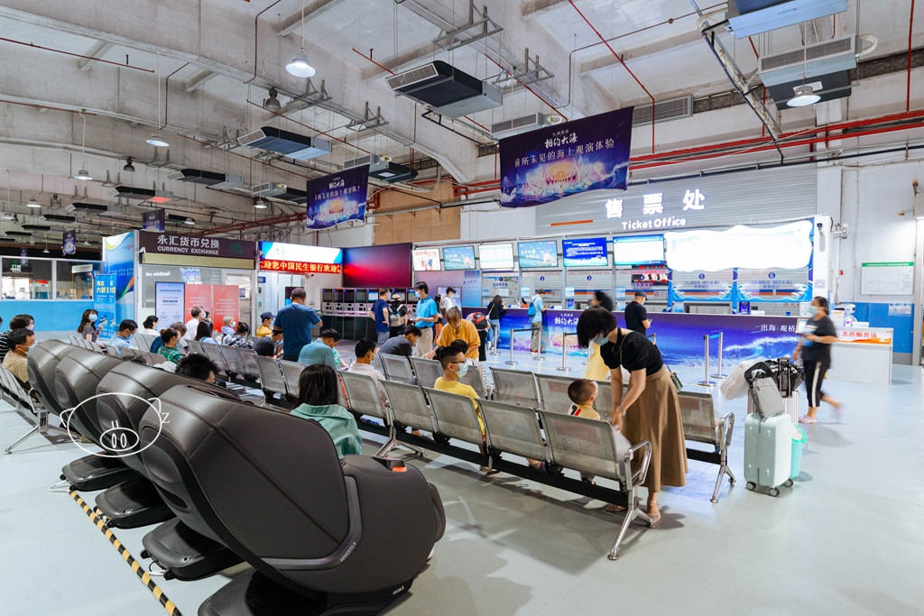 停好车,进入到九洲客运港售票大厅,座位不少,还有母婴室、自助饮水机等提供, 还有一些商铺,解决吃喝。