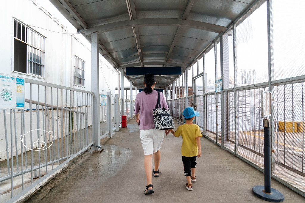 拿到票,过了安检、验票后,小猪和妈妈走入了通道往码头去,哈哈,小猪可兴奋了,一路走一路问,东张西望很好奇。