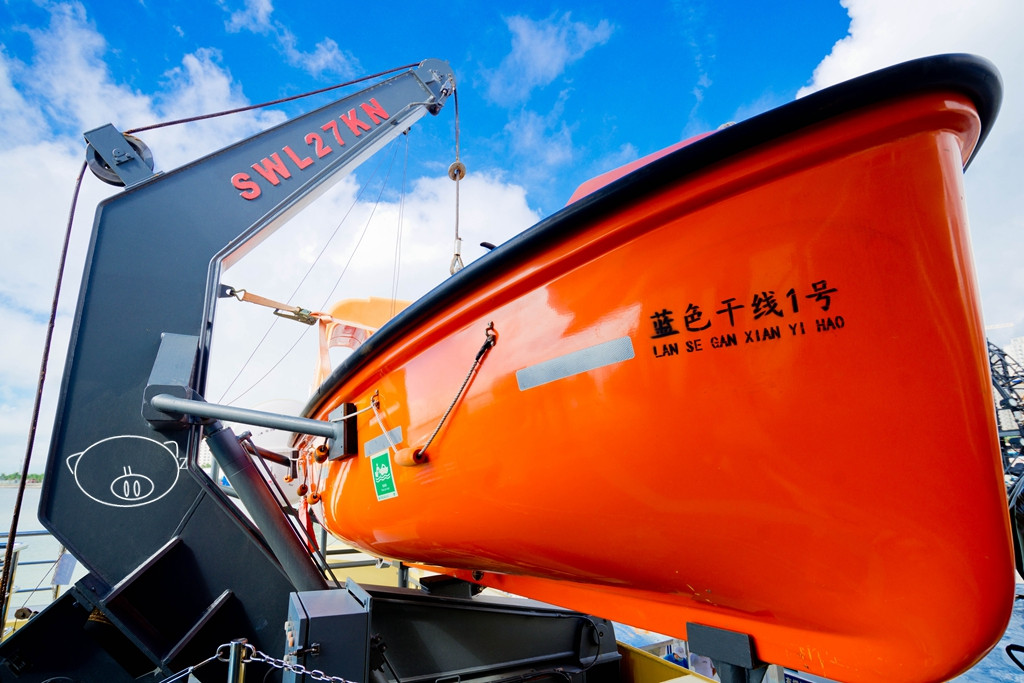 二层甲板上有洗手间和备餐间,还有吊着的一艘救生艇,小猪还问了半天说小船为什么要吊着啊。