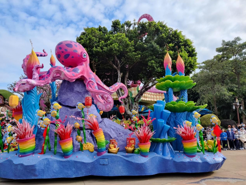 之后我们就看了花车云游和烟花。花车巡游也有好几场。这里的花车巡游和迪士尼的并不一样,不过也很好看哦。这里的花车上面就是各种海洋生物的角色,超梦幻,超浪漫的感觉。