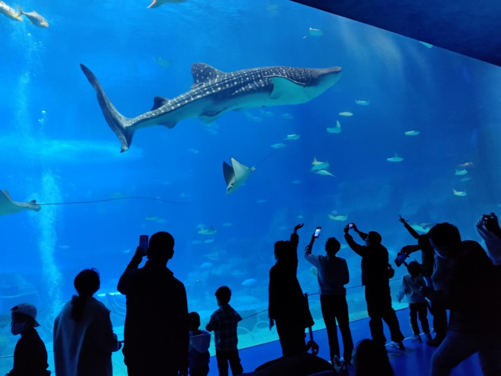 在人相对少一点的时候我们先去了鲸鲨馆,毕竟这里也算是最火的场馆了。事实证明,这个决策简直太英明了。据说到了下午一两点的时候就要排队很久很久了。