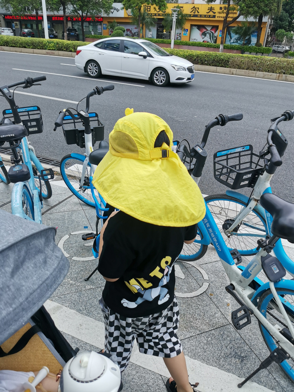我们6月22日1点多在酒店入住,睡了午觉,4点半骑行出发去珠海渔女,珠海的共享单车最好了,自行车有后座,还是小椅子的,小孩子可以坐着呢。沿着海边一直走路去海滨公园,路上人很多,所以带孩子要注意安全哦。