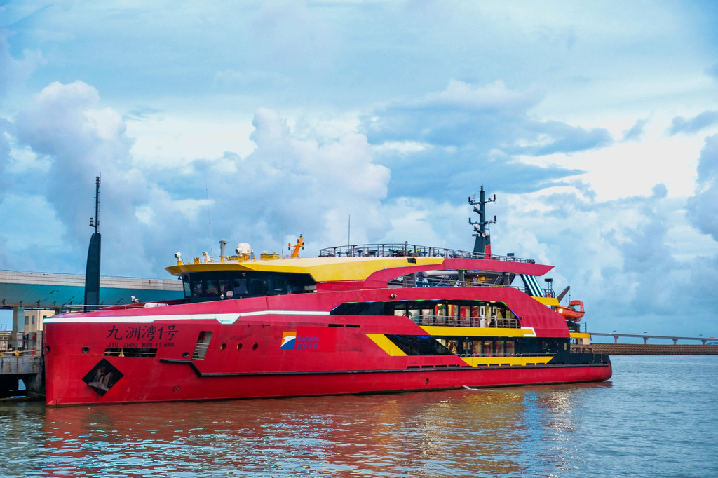 航行路线:珠海九洲港-珠澳口岸人工岛-“风帆”双塔-穿越港珠澳大桥桥底-远眺澳门城市景观-海豚塔-远眺西人工岛-日月贝-情侣路-海上明珠九洲岛-珠海九洲港。