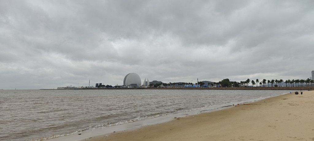 从白色灯塔的沙滩向北沿着海岸线步行,珠海供人游玩的沙滩都在这条线上——灯塔,雕像,戏剧院,白色沙滩。珠海是一种现代商业都市,珠海的沿海沙滩更像是都市中供人散晨练的公园。新婚夫妇在这拍婚纱,情侣在这约会,父母带着孩子在这挖沙,朋友们在这骑行,外地人来这看看拍几张照片。城市规划会将一些地标建筑建在这,为本不多景色的沙滩添加一些景点。