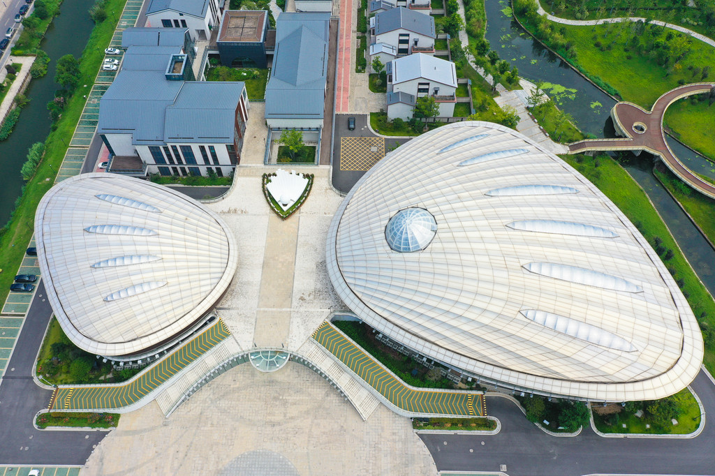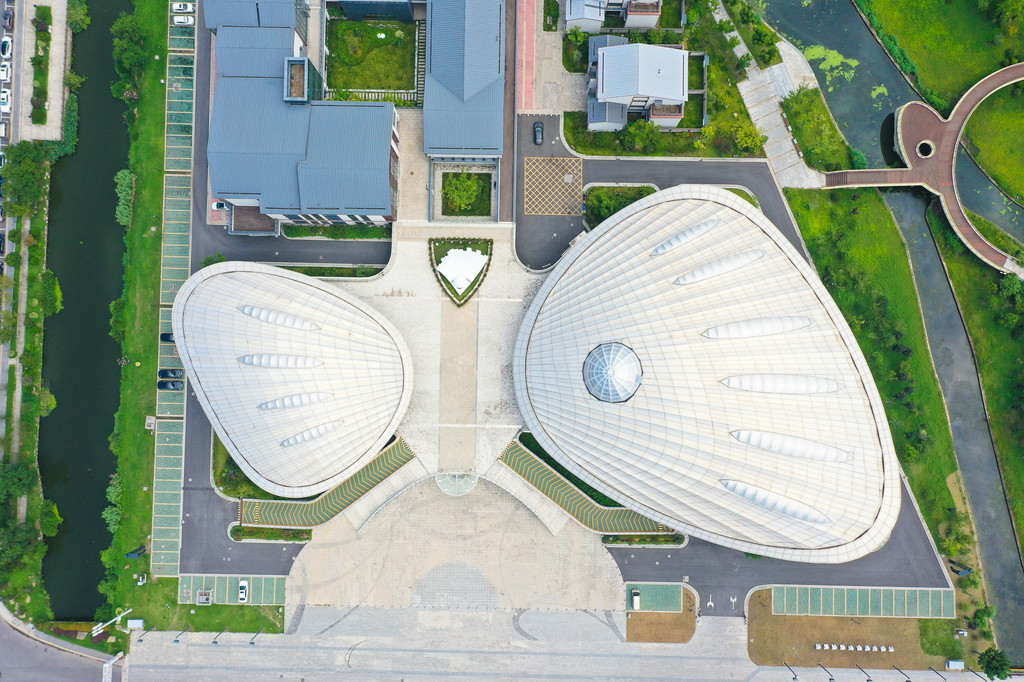 一颗珍珠,造就一个产业。一个产业,成就一座城市。来到珍珠小镇最不能错过的就是诸暨世界淡水珍珠博物馆,从无人机的角度看博物馆的外观就是像两个蚌一样,非常的壮观。走进诸暨世界淡水珍珠博物馆宽敞明亮的展厅,这里展示珍珠历史、文化、加工等。