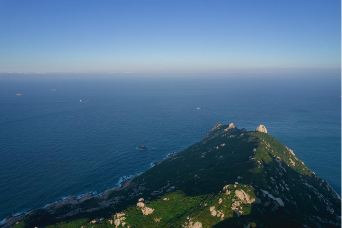 象鼻顶峰,形似象鼻而得名,岛上的最高点,一面连山,三面向海,数百米峭壁悬崖直入海底