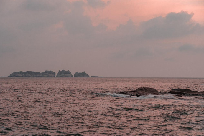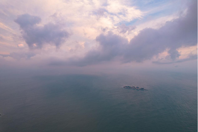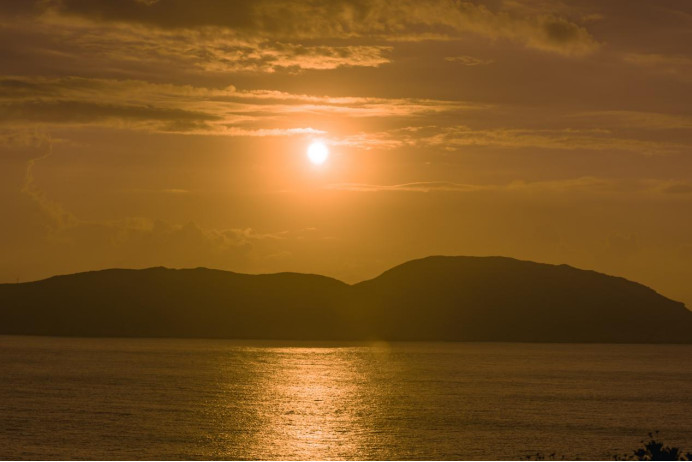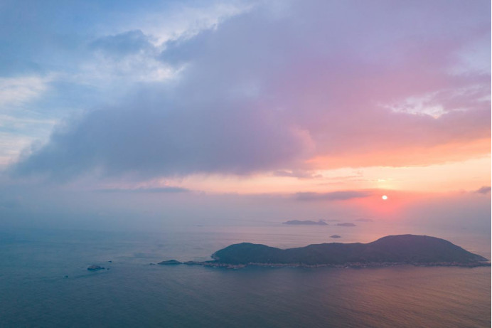 日落时分,光线逐渐柔和,让整个小岛沐浴在暖意里