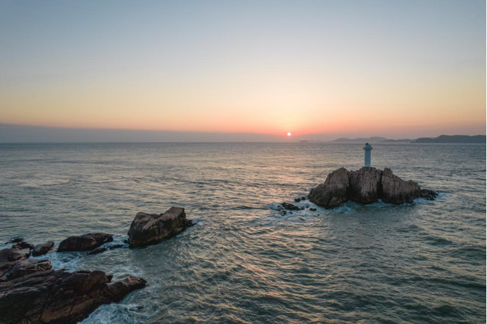 东海第一哨灯塔,落日余晖下美哭了