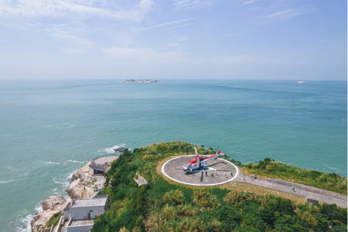岛上的停机坪,可以乘坐直升飞机在附近海域巡游