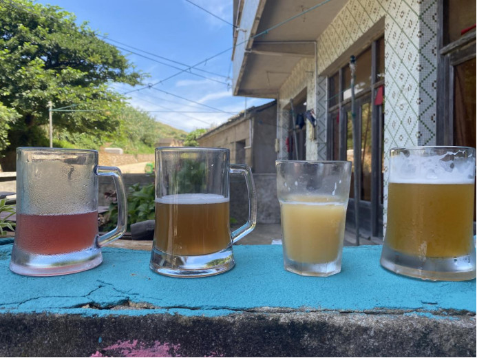 又比如这家精酿馆,老板特别有意思,老家在河南,来到东极岛后就呆岛上了,扛来了啤酒桶在岛上自产啤酒。我第一次来东极岛的时候就在他们家喝了好几杯酒,口感特别好,爆赞。