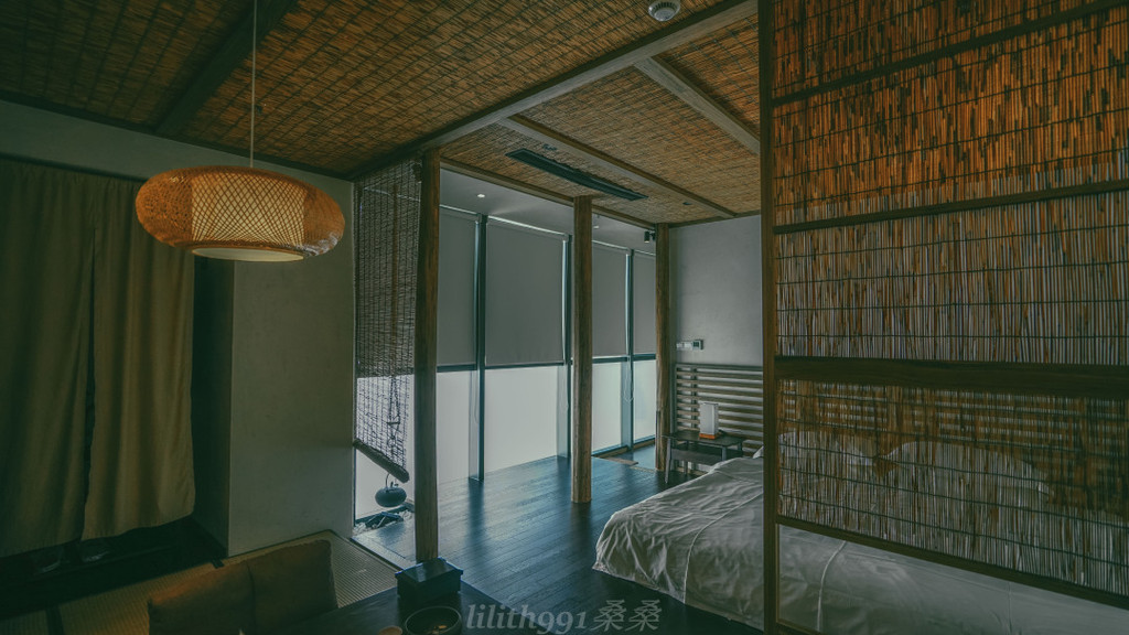 房间和外部环境一脉相承,竹编的屏风间隔,榻榻米,泡泡茶,再品品小点心,感觉很棒。