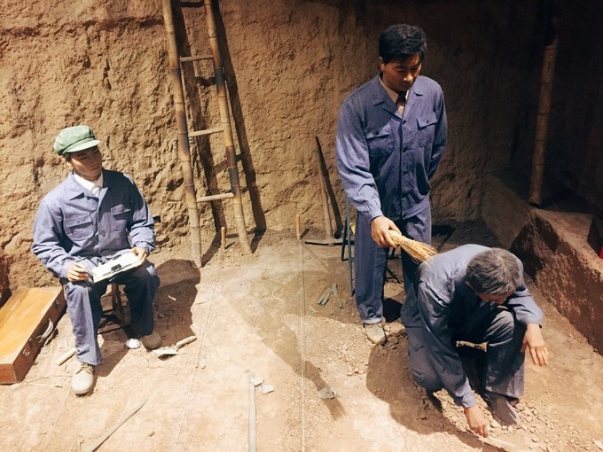 重现了考古学者工作时的场景,蜡像做的很逼真