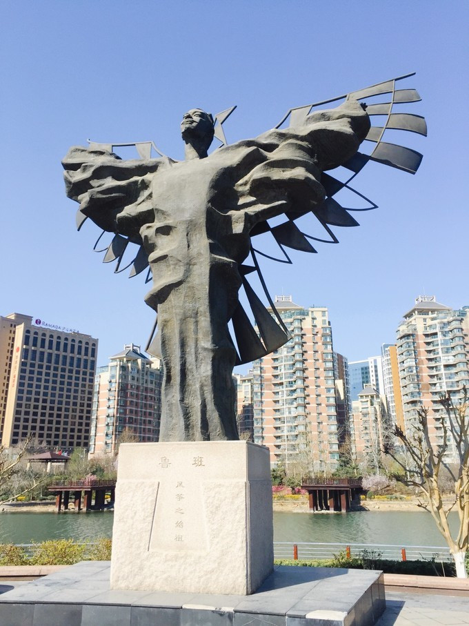 鲁班是风筝的鼻祖,博物馆门口立着鲁班的雕像