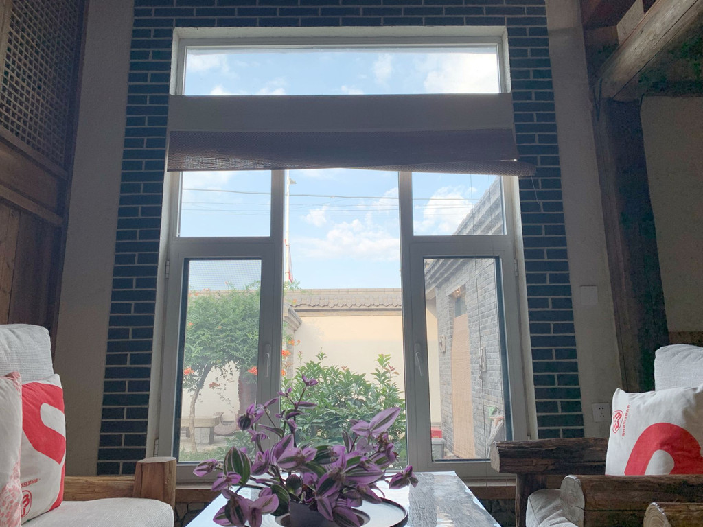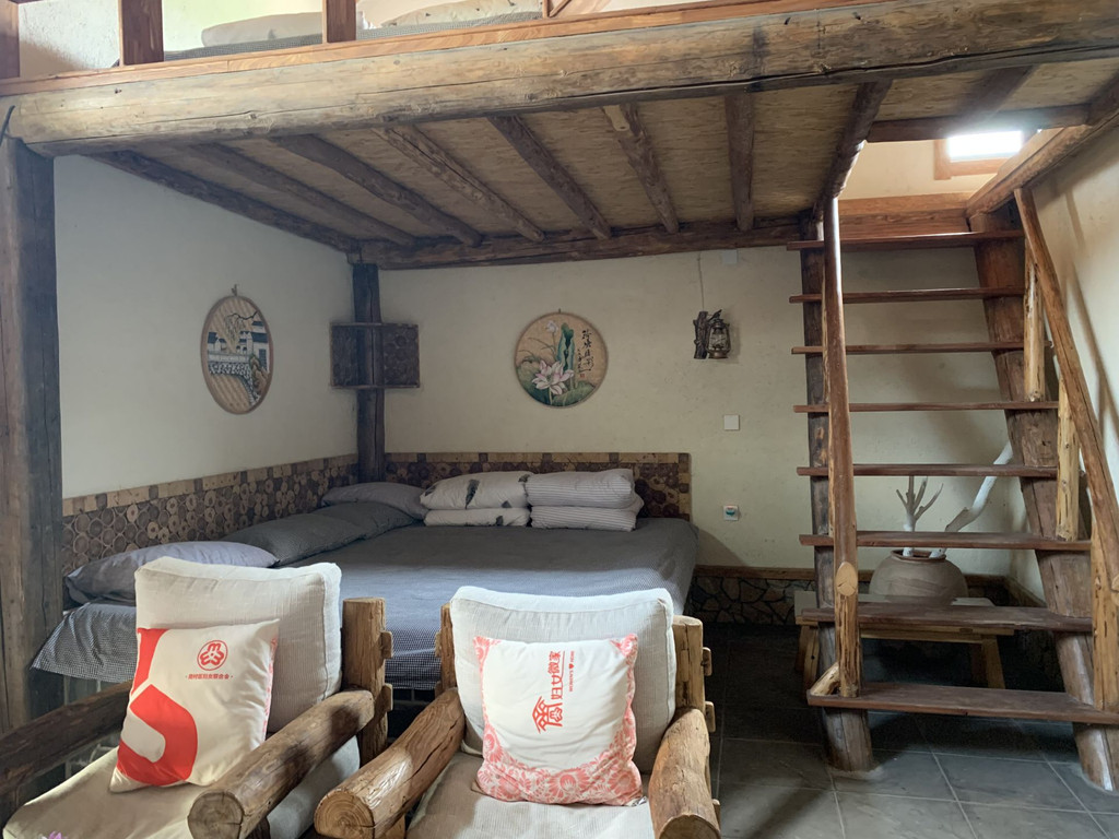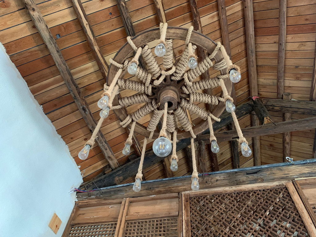 见一个爱一个是我了,参观了荷花居之后我又又又爱上车轮灯了,据说是用麻绳缠绕在木质车轮上做成的,大大小小的灯泡被麻绳连着,气质、光亮丝毫不输现代化大吊灯。一大面的窗户让屋内采光充足,不失为另一个打卡宝地了,光线穿过发丝落在指尖,这种情况下拍出的照片中的人绝对可以轻松p为阳光精致女孩or男孩了。在上下两层房间的木质楼梯上也拍了好多照片,毕竟在生活中很多情况下只能看到水泥楼梯,室内木质楼梯打卡拍照发在朋友圈一定超级高级!