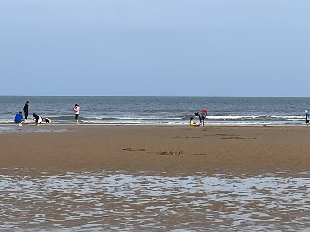 睡到自然醒,酒店吃个早餐带宝宝去万平口逛逛,穿上赶海服挖沙赶海啦。