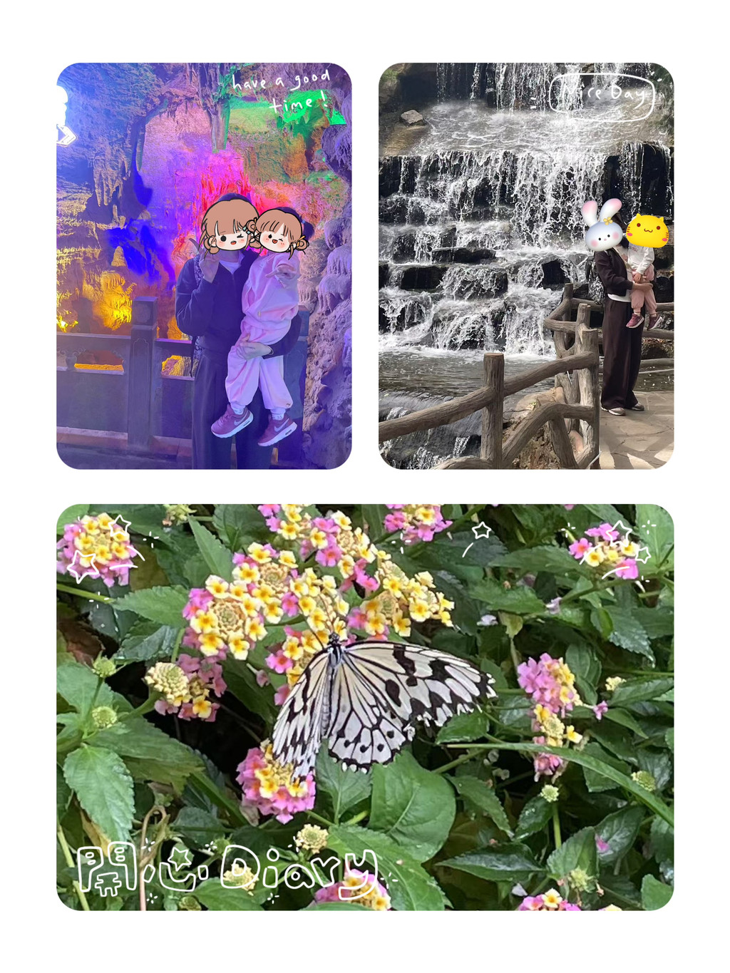 景区很大,需要走路的地方很多,但路途平坦。有蝴蝶谷,蝴蝶很多,可以让宝宝近距离接触蝴蝶。荧光湖是一道地下暗河,船夫撑船进入,头顶萤火虫点点荧光梦幻美丽。