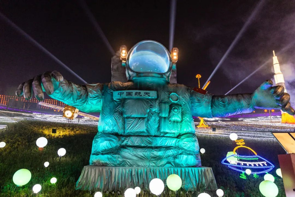这里有星船舰桥、飞行梦想、上帝之眼、麦哲伦星云等多个主题灯组,壮观、神秘,让人仿佛身处神秘未知的宇宙。