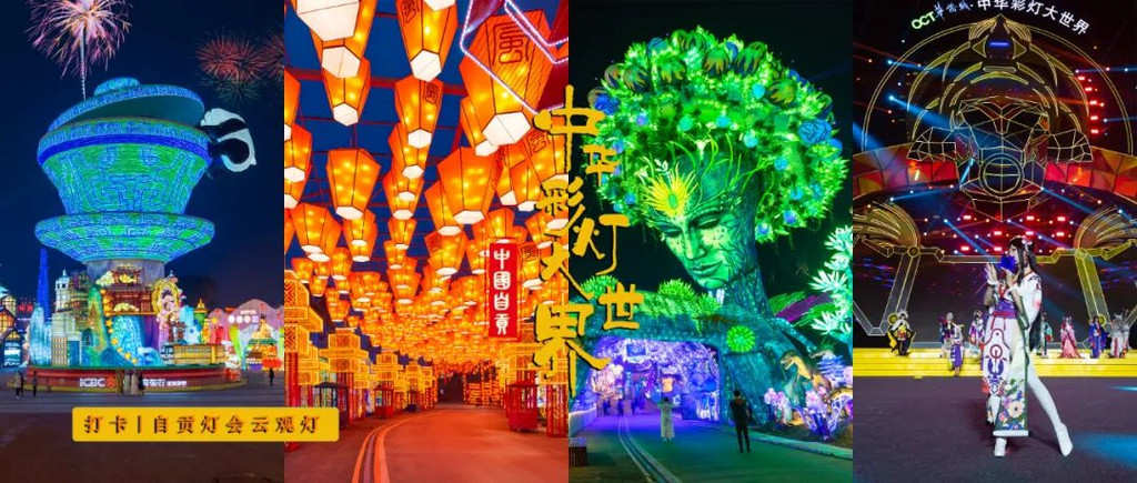 自贡· 中华彩灯大世界,将以一条时间轴为序,用灯组将远古——过去——现在——未来串联,打造出十大流派、华夏鎏光、巴蜀一家亲、自贡记忆、奇幻侏罗纪、梦幻河湾、盐街灯市、百年辉煌、创想美灯汇、潮玩联盟、企业之光、环游星际、未来之城、自贡欢迎您十五大主题区域,打造年度新春阖家欢乐的打卡地标!