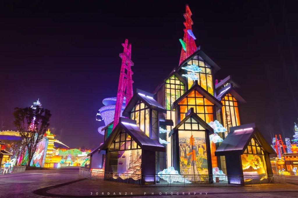 盐街灯市灯组就是以掌灯报时“十二时辰”为设计理念,每个时辰对应一盏灯,在栉比鳞次的建筑之间,营造出灯火辉煌、如梦似幻的繁华街景。