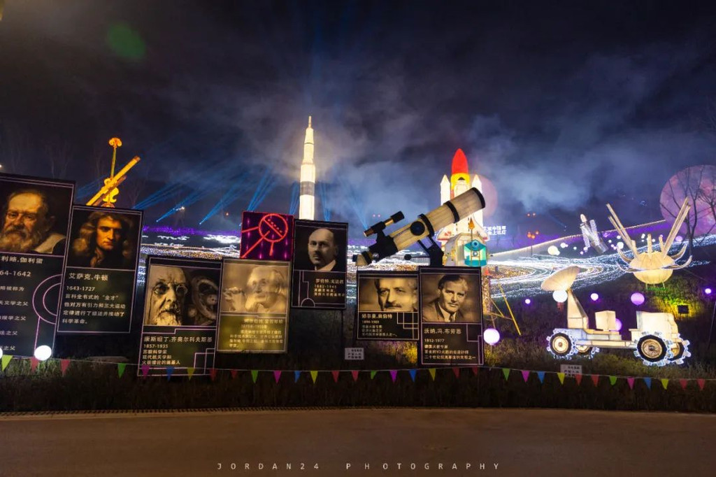 致敬人类最聪明的大脑灯组:在航天技术上有很多伟人,这些伟人们对探索宇宙做出了杰出的贡献,第一次将望远镜对准天空的伽利略,发现火箭方程式的康斯坦丁·齐奥尔科夫斯基,提出光子假设、创立狭义相对论的爱因斯坦等数十位为人类航空航天事业做出贡献的人类,在这里就用灯组的方式一一呈现出来,除了科普功能,也是对人类最聪明大脑的致敬。