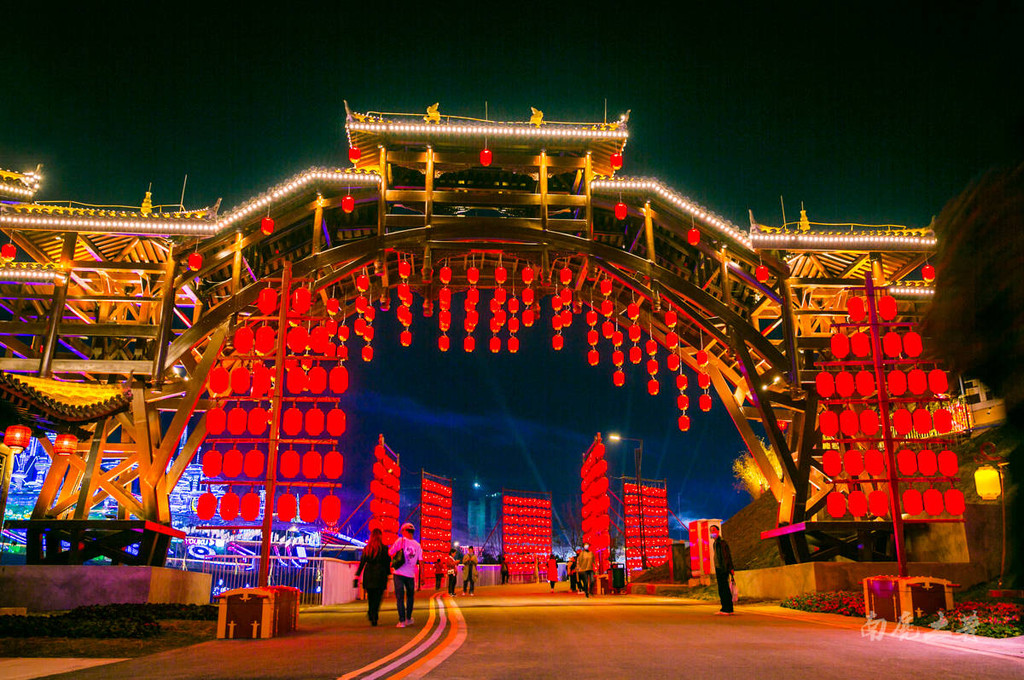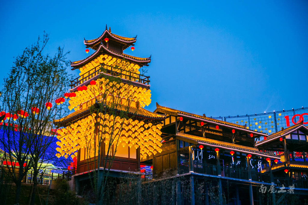 这是【盐街灯市】以掌灯报时“十二时辰”的设计理念,每个时辰对应一盏灯,在栉比鳞次的建筑之间,营造出灯火辉煌、如梦似幻的繁华街景。