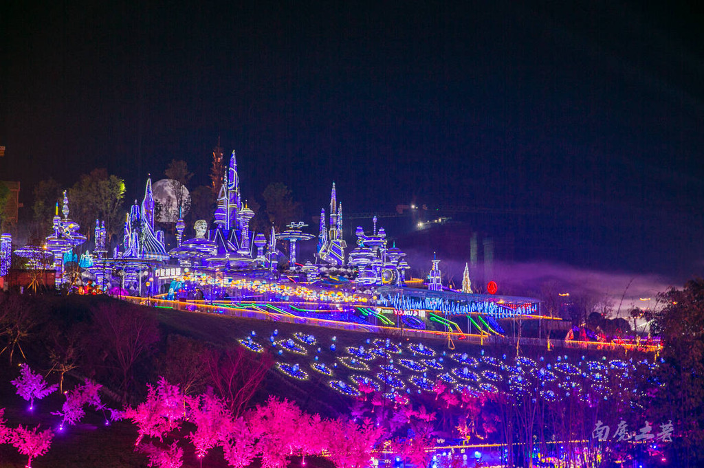 拥有近千年历史的“天下第一灯”,今年主场移到自贡东盐都大道的中华彩灯大世界,区域更开阔,场面更宏大,成自泸高速出口更近,四周有多个大型停车场,全新展区打造十五大主题灯组、上百组巨型彩灯,有汲取国画工笔,美学之大成的《华夏鎏光》,有荟萃川渝各城风貌之灵光的《巴蜀一家亲》,围绕“恐龙时代”主题打造穿越时空梦幻场景的《奇幻侏罗纪》,有《梦幻河湾》,《盐街灯市》,建党100年,风雨历程的《百年辉煌》,还有大胆创新的《潮玩联盟》,全新沉浸式体验带你走进一场视觉盛宴。