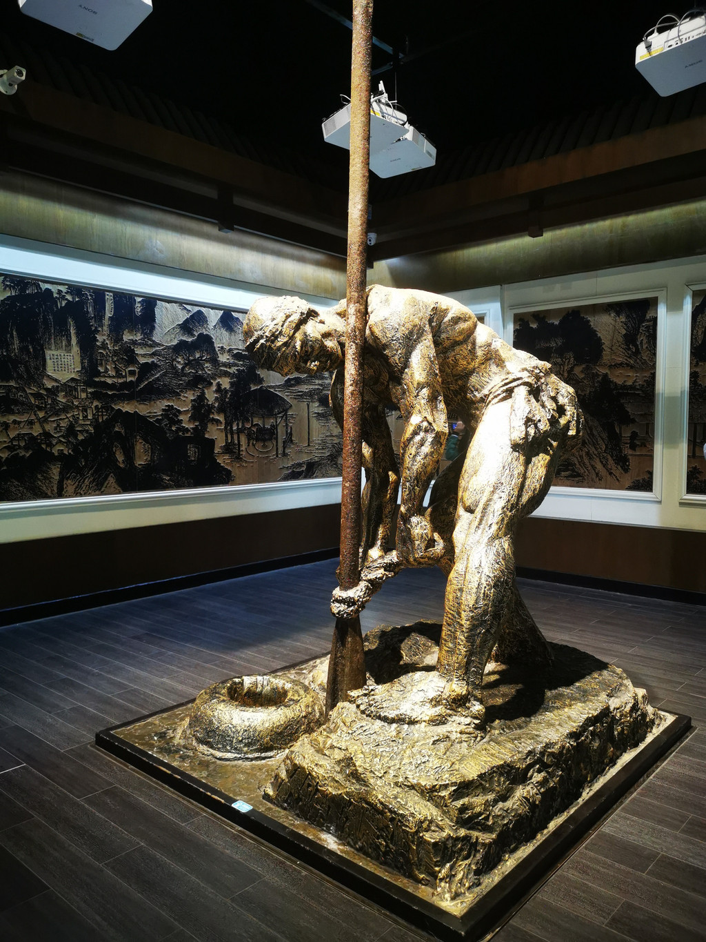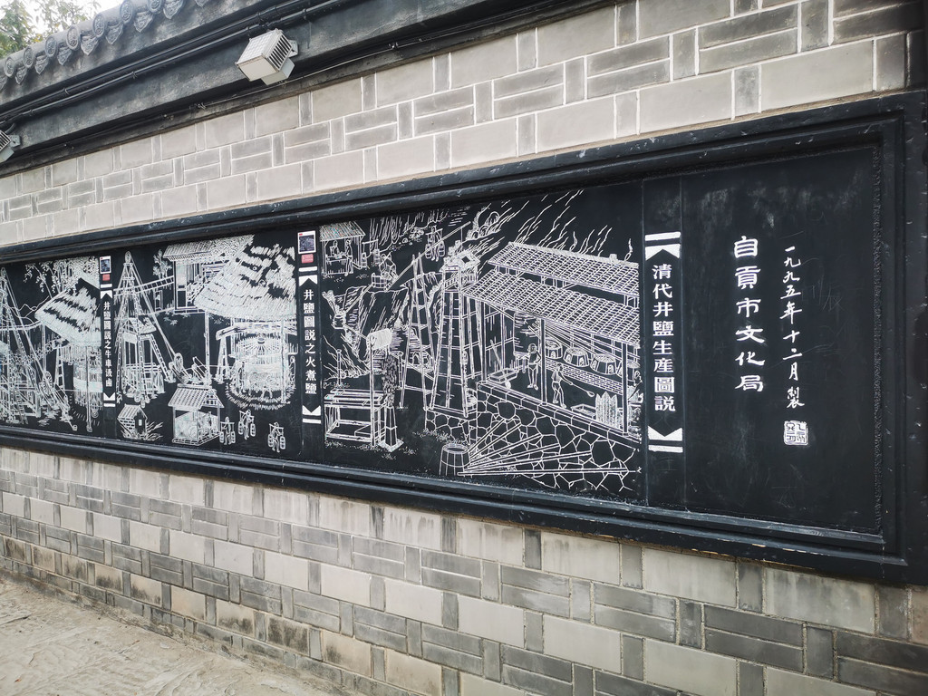 在一侧的围墙上,自贡用木版画方式呈现“清代井盐生产图说”,成为一道景墙、一道风景。