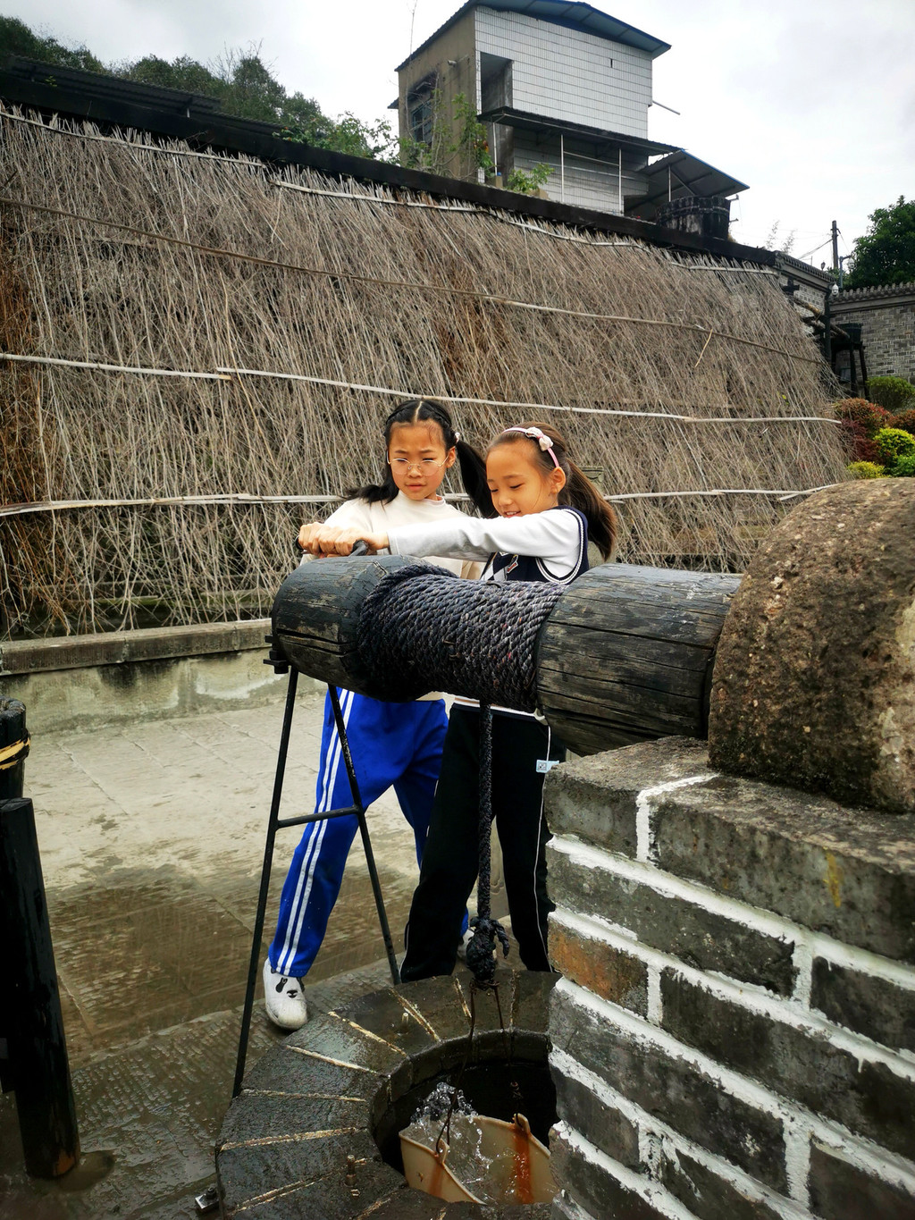 这里可以让小孩体验一下如何从井里打水上来,也是研学的一部分。