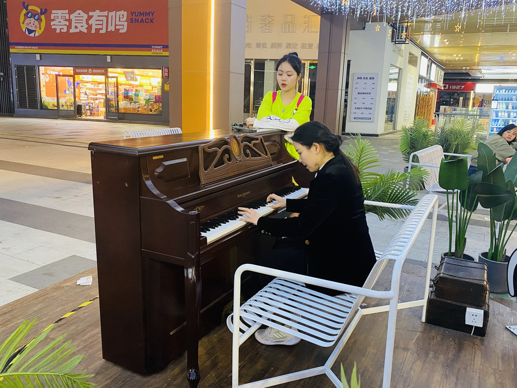 我也心痒痒,弹了一首茉莉花,旁边的小姐姐还跟我一起和了一曲!