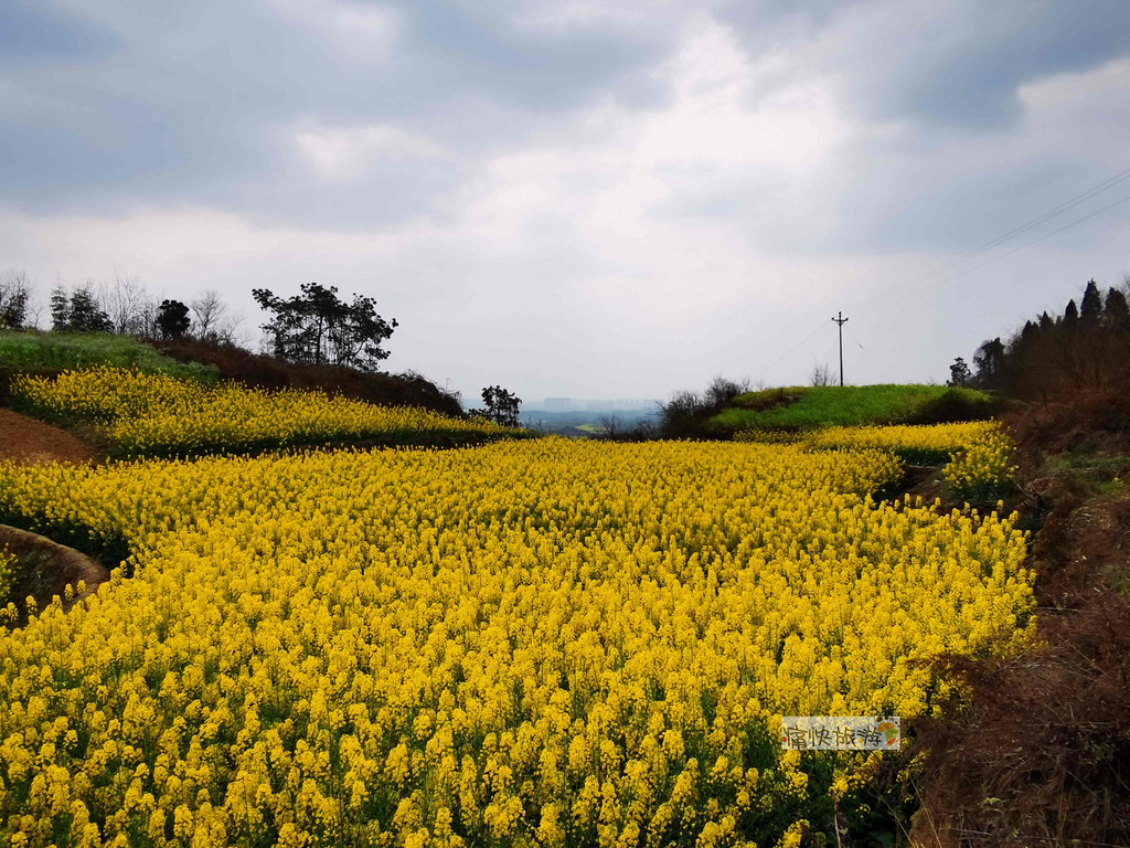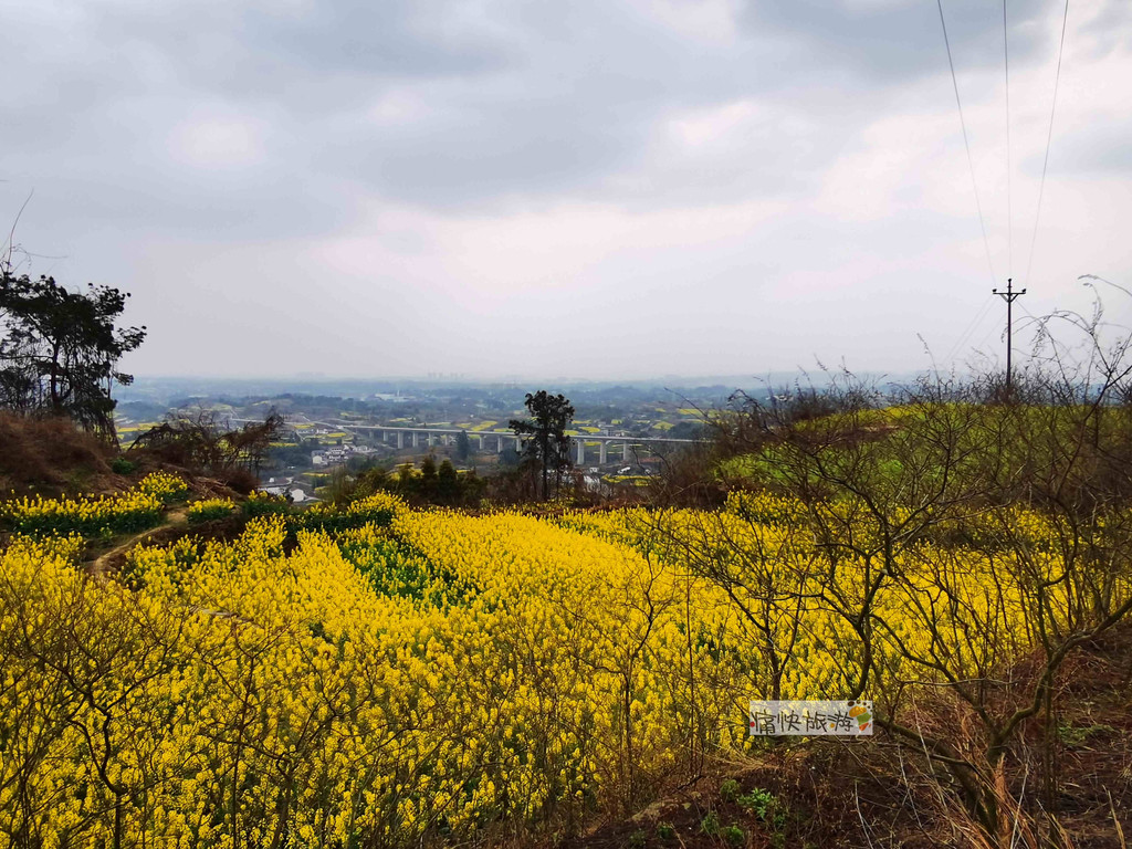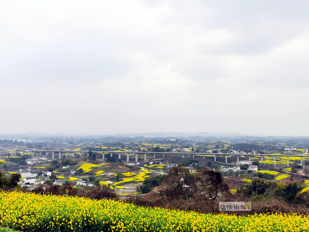 站在顶端,透过油菜花田能看到成自宜高铁轿子村特大桥。