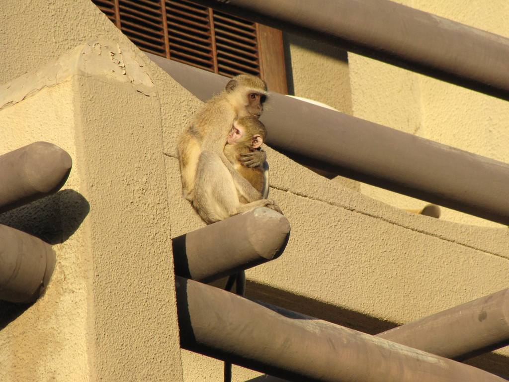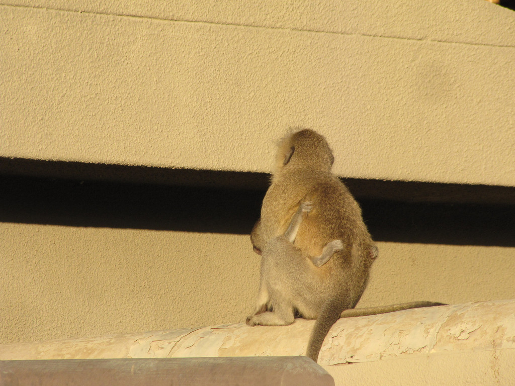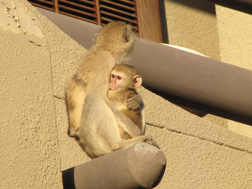 突然,眼前一个闪烁,我放在茶几上的从北京带来的“自制山楂丸”不翼而飞,就在我们的眼皮底下,就像过电影一样快速,我意识到是在房间里受到打劫,看到阳台门的缝隙,钻一只猴子进来是绰绰有余的。我猛的追到阳台,向前看去,一只猴子正在撕开手里的山楂丸包装纸,迅速的将山楂丸塞进嘴去,咂磨一下嘴,似乎是在说:“酸酸甜甜的,味道不错!”。原来,窗外有数十只猴子🐒在宾馆外虎视眈眈,我们所能做的事情就是关好门窗。