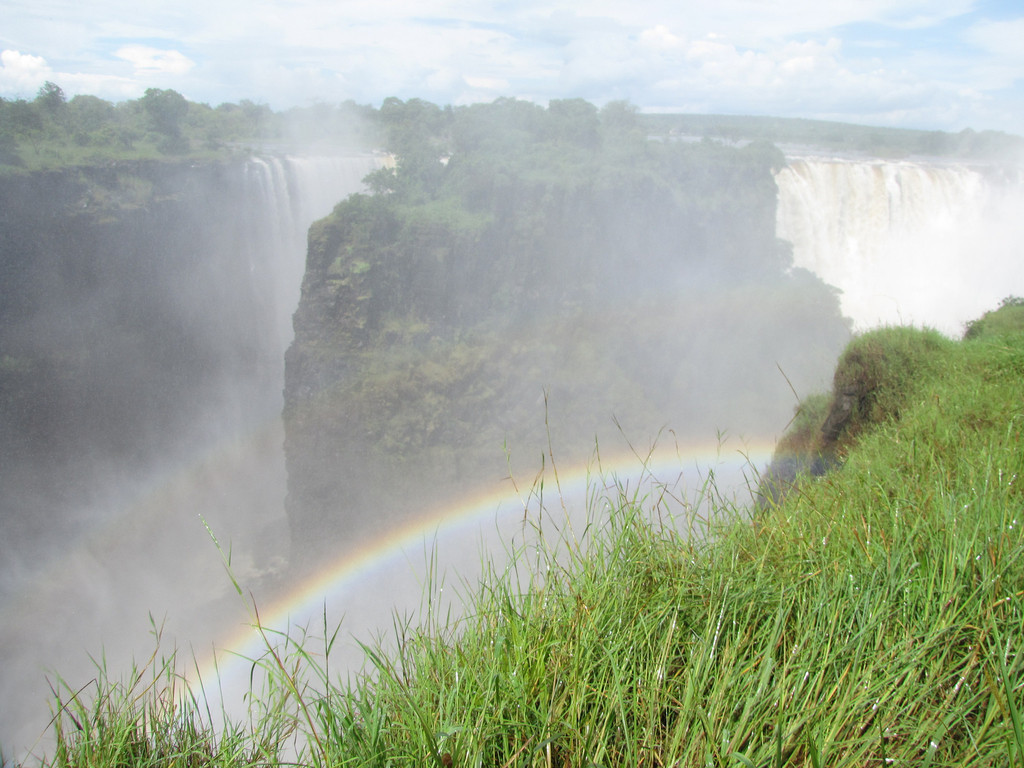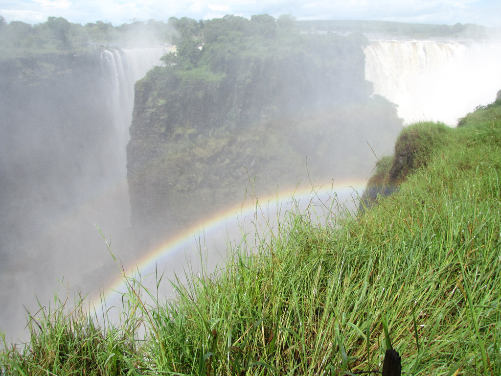 关于彩虹,不会有游客扑空的,也就是说,只要你到了这里,就必然看得到彩虹。巨大的水雾,在两公里之外都可以看到彩虹,我们两次去都看到了美丽的双彩虹,那才是大自然的奇观,绝妙的彩虹给维多利亚大瀑布了绝对的使用权,在这里只要是太阳升起,就会出现彩虹。